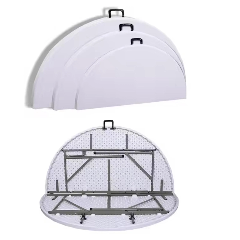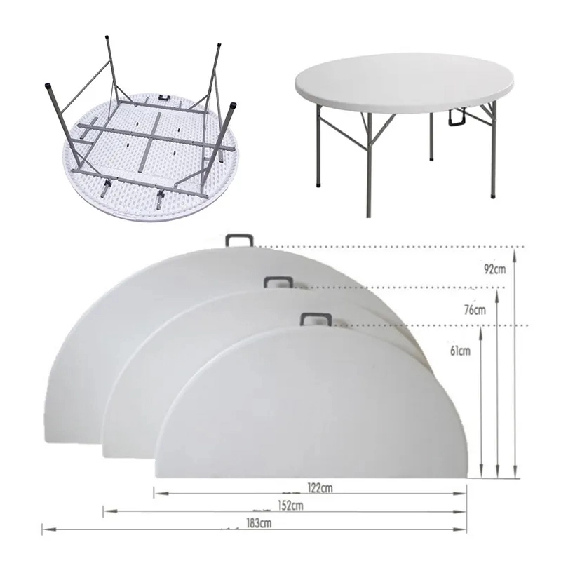 White HDPE round folding wedding table, durable plastic design, portable foldable structure, 3 size options,White HDPE round folding wedding table, durable plastic design, portable foldable structure, 3 size options, customizable color, ideal for banquet, party, outdoor wedding, restaurant and event rental use. customizable color, ideal for banquet, party, outdoor wedding, restaurant and event rental use.